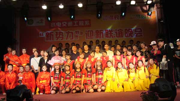 10月11日晚18:30,由水电交通工程系主办的“‘新势力’迎新晚会”在大学生活动中心隆重举行。院党委副书记覃守云、联通黄冈分公司柯总、李总;水电交通工程系党总支书记刘学贵、主任张红英以及水电交通系全体师生,各兄弟系部的教师、学生代表观看了演出。喜气洋洋、热烈奔放的舞蹈《大地飞歌》首先拉开了整场晚会的序幕,本场晚会歌舞生辉,弹唱飘彩,小品滑稽幽默,武术刚柔并济,充分展示了我系学生的多才多艺,真正体现了节目的多样性和精彩性,使台上台下形成互动,把整个晚会现场推向了高潮。晚会不仅表达了我系对2007届新生的热烈欢迎,而且增进了同学们的友谊,充分体现了我系的凝聚力和团结精神。