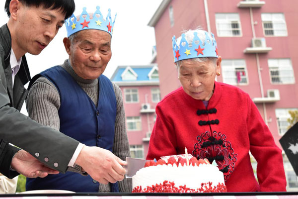 与老人互动