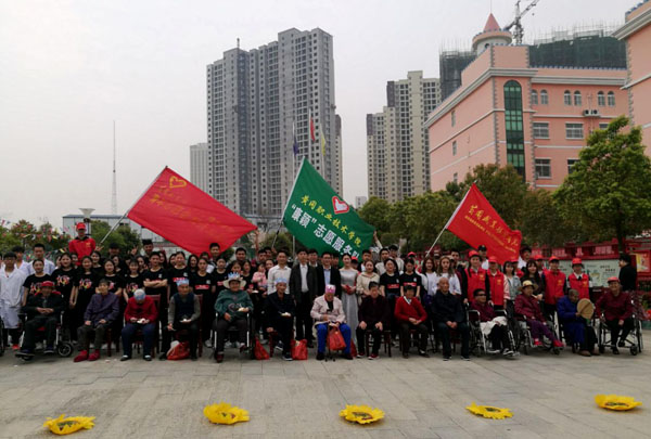 4月1日上午,“康颖”志愿服务队建筑学院分队赴黄冈市福利中心开展慰问孤寡老人志愿服务活动。本次活动的主题是生日宴,近百名志愿者用他们的热情服务为4月份过生日的老人们度过了一个温暖的生日。Beat365党委委员、工会主席、宣传部长郑柏松,建筑学院院长黄正东,团委书记李宁等参加了本次活动。