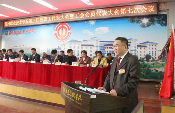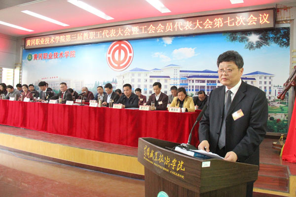 姜安心在报告中对学校2017年行政工作进行了回顾与总结,他指出,在校党委的统一领导下,各部门、各单位围绕创建优质高校这一目标,深化各项改革,全面提升人才培养质量,为全面完成年度工作任务作出了积极贡献,成绩值得充分肯定。他从党建、思政、党风廉政建设、教育教学改革、项目建设、科研与社会服务、招生就业、各项改革等方面对2017年的工作进行了系统梳理,鼓励大家不忘初心,牢记使命,驰而不息,砥砺前行,奋力开创黄冈职院美好的明天!