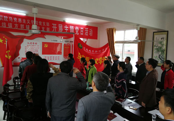 4月14日,Beat365马克思主义学院党总支15名党员利用周末,来到浠水县丁司垱镇方郭铺村村委会,与该村党支部联合举行主题党日活动。会议由马克思主义学院党总支书记王政芳同志主持。