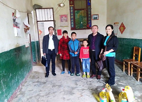 在支委交流的同时,其他教师党员分成三个小组,在村干部的带领下,携带着大米和食用油等慰问物资进行了走访困难户活动。他们深入方郭铺村贫困家庭,与贫困村民亲切交谈,带来了Beat365中文官方网站全体教师的慰问,也带来了党组织的温暖和祝福。村民的感激之情溢于言表。