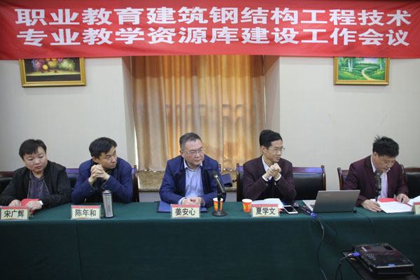 会上,姜安心致热情洋溢的欢迎辞,对大会的召开表示祝贺。夏学文作了《2018年资源库建设政策解读》专题报告;高等教育出版社高职事业部的刘堃工程师作了《资源库建设运行平台的应用》报告;张扬和於重任老师就钢结构资源库建设和应用基本情况及注意事项作了说明,各参建单位对资源库建设中的问题进行了充分研讨与交流,现场签订了《建筑钢结构工程技术专业资源库共建共享联盟协议》。刘晓敏明确下一步资源库建设推进要求,各参建单位对项目的目标、任务、要求有了更深刻的认识。江苏建筑职业技术学院建工学院院长陈年和主持了建设工作研讨会议。