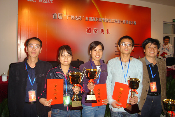 2007年10月19日,首届“广联达杯”全国高职高专建筑工程量计算技能大赛全国总决赛在上海举行,本次比赛历时数月,全国各地各分赛区6000余名选手经过层层选拔,最后共有16个院校48名选手得以进入全国总决赛。我院土木建筑工程系代表湖北分赛区派出的3名选手全部获奖,05级工程造价班谈慧同学获全国总决赛二等奖,周鉴和范如霞同学获全国总决赛三等奖,并获得湖北分赛区一等奖三项、二等奖五项,本次大赛中取得的优异成绩得到了教指委的领导和同行们的充分肯定和好评,标志着我院土木建筑工程系工程造价专业订单培养、项目教学的人才培养模式改革取得了丰硕的成果,学生的实践动手能力在全国名列前茅。