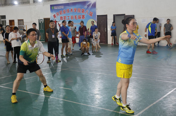 比赛过程中,各代表团精诚合作,合理分工,相互指导,呐喊助威,鼓舞士气,每个选手充满激情、充满斗志地迎接每一次挑战,每个精彩扣杀让人惊心动魄,每个轻便灵巧的网前挑球让人目不暇接,每一次精准的落点无不令场外观众拍手称赞。每一场比赛,队员们配合默契,运用各种球技、步法对击博弈。在冠亚军争夺赛上,机关二总支选手龚勤、周华斌对阵公共课部选手占明、王颖之间的男子双打比赛,他们精湛的球艺、经典的配合将羽毛球赛推向了高潮,观看的教工和学生掌声、笑声、喝彩声连成一片,他们的表现给现场球迷们呈上了一份饕餮盛宴。