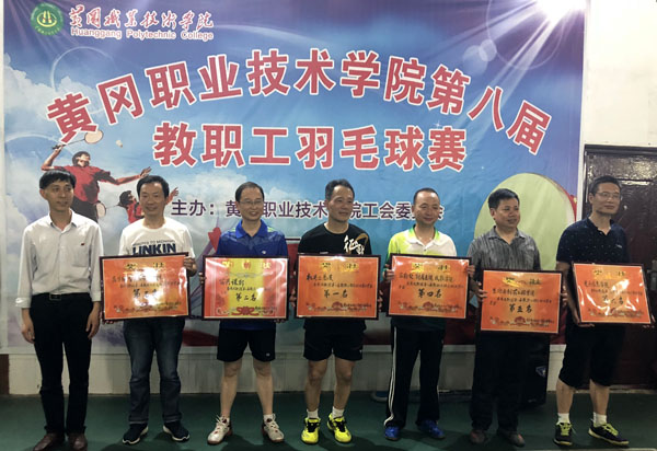 5月15日晚7:00的闭幕式上,校党委委员、工会主席郑柏松为获奖团队颁发了奖状,并合影留念。他说:本届教工羽毛球比赛是一次非常成功的赛事,大家“羽”球会友,赛出了风格,赛出了水平,赛出了黄职人的新风采。希望今后大家带着球赛的拼搏精神和团队的协作精神,以更加饱满的激情投入工作、学习和生活中,以新的姿态为学校的建设发展作出应有的贡献。