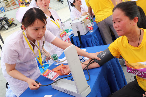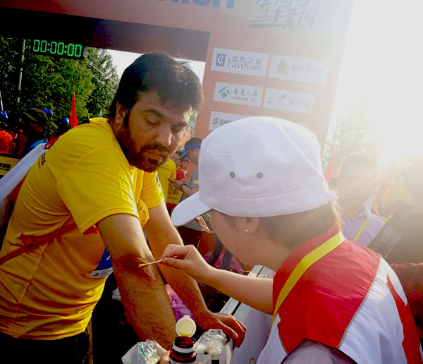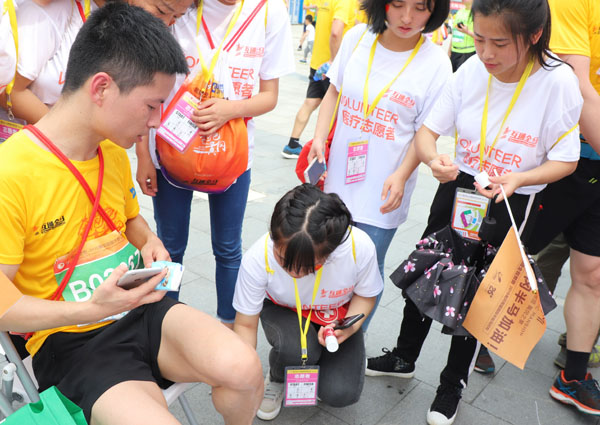 5月6日4时,600名青年志愿者早早赶到比赛现场,根据分工,有的清理赛道沙土,有的扫除赛道积水。在比赛中,有的当保安员,有的准备随时紧急救助,有的沿途为运动员分发补给饮料和食物,有的为运动员递送毛巾,有的为运动员指引方向,有的为运动员加油助威,有的为运动员处理伤口,有的扶助身体不适者……他们全身心投入到为“跑友”的服务工作中去,累并快乐着。