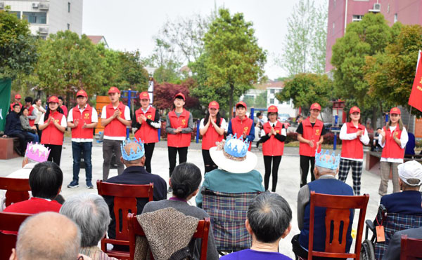 2018年4月1日上午9点,文化浓厚的黄冈市福利中心热闹非凡,老人们像过节一样,脸上洋溢着笑容,排排坐在操场上。坐在第一排的10多位4月生日的老人特别开心,他们戴着别致的生日帽,吃着香甜的生日蛋糕,看着一个又一个精彩的表演,幸福满满,集体唱起《生日歌》,那场面令人震撼,令人感动!对于无儿无女无人照顾的老人,最渴望的是什么?是亲情!对于儿女工作忙无暇照顾的老人,最渴望的是什么?还是亲情!学校“康颖”志愿服务队建筑学院分队为老人送去的不仅仅是生日祝福,送去的是真情温暖;送去的不仅仅是多彩的节目,送去的是开心良方;送去的不仅仅是专业按摩,送去的是流淌在心底的安慰!