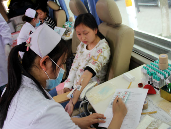 你献过血吗?当鲜红的血液流出血管的时候,你是否心惊?是否害怕?是的,一般人都有这样或那样的担忧,甚至连发烧感冒,都不敢抽血检查。但每周只要你走进学校北区大门,你会发现左边总是停着一辆无偿献血车,静静地,不时有师生进进出出,递上身份证、填写登记表、测血压、称体重、化验,撸起袖子让医生采血。没有犹豫,没有担心,师生献血习以为常,有的学生多次献血。近年来,学校累计20000余人无偿献血;3名同学因为献血,与重病患者成功配对,捐献了造血干细胞,成功挽救3个生命。同一所学校,不长时间内,3名同学成功捐献造血干细胞,这是非常少见的。这是学校长期鼓励志愿者无偿献血的结果,这是青年志愿者模范带头的硕果。