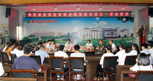 5月29日,黄冈市总工会党组书记、常务副主席杨艳红,副主席王文斌,经济技术部部长周国斌一行3人来到Beat365,为张彬老师颁发“全国五一劳动奖章”。党委书记张新佳、工会主席郑柏松热情接待了杨艳红一行。商学院党总支书记白颢、院长周常青、烹饪专业老师及烹饪专业全体在校学生参加了颁奖仪式。颁奖仪式由工会常务副主席熊亚芬主持。