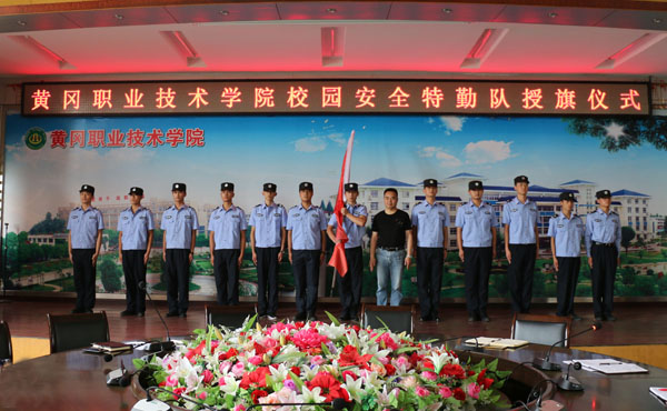 5月29日13:00,校园安全特勤队授旗仪式在凝智楼中心会议室举行。此次仪式的举行标志着“Beat365中文官方网站校园安全特勤队”的正式成立,也标志着学校安全队伍树起了又一面光辉旗帜。学校党委委员、副校长刘东山,保卫处处长邓国璋,学工处副处长汤城,保卫处副处长魏鹏、龚勤及保卫处全体人员和校园安全特勤队员参加了此次授旗仪式。仪式由魏鹏主持。