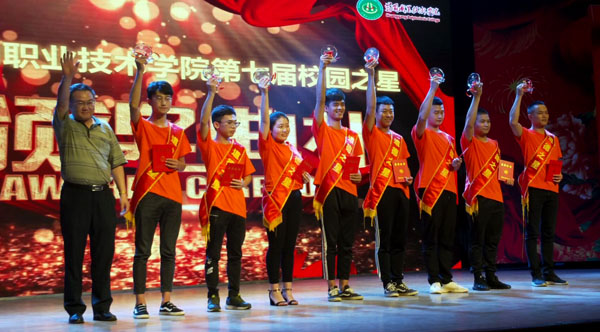 姜安心等学校领导分别为“道德之星”等五类校园之星进行了颁奖。晚会采用诵读颁奖词、嘉宾颁奖、分享感悟、互动表演等形式穿插进行,让现场观众感受了本年度每一位校园之星背后的故事,以及这些故事带给我们的心理感悟。学习之星代表向我们阐述了精益求精、积极进取,获得全国技能大赛的学习历程;才艺之星代表分享了他在青春路上,不懈追逐艺术梦想的感悟;服务之星代表用镜头记录了在校园里默默奉献的同学们,让我们感受到了温暖;自强之星代表向观众讲述了积极乐观、自立自强的感人故事;道德之星代表用朴实的语言,带我们重温了他们勇救南湖周边跳河男孩的事迹,展现了热爱生命,服务社会的责任担当。客观真实的事迹分享,真情流露的阐述,诠释着平凡中的伟大,感动着在场的每一个人,得到了大家发自内心的掌声。