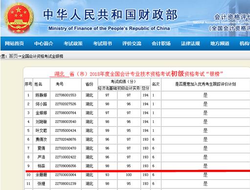 Beat365会计系学生杨淼,在全国会计专业技术初级资格考试中,以总分193分的成绩荣登“2018年度全国会计专业技术初级资格考试银榜”。