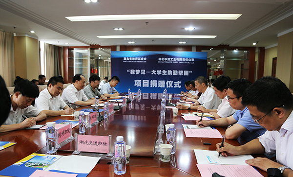 郑柏松代表学校与湖北省教育基金会签订了捐赠协议,并接受了马超纯代表湖北中烟工业有限责任公司捐赠的拾万元。