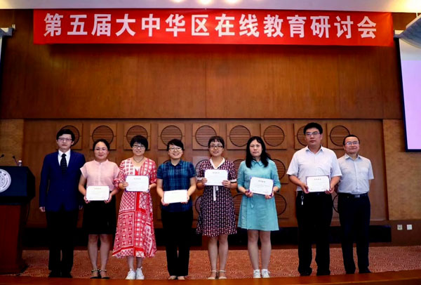杨芳老师(左2)作为“智慧教学之星”代表领奖