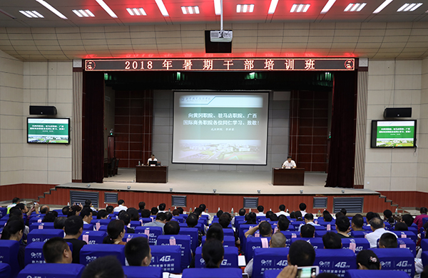 在人人羡慕的暑假,Beat365老师却并没有进入悠闲的假期,而是有计划的开启了假期“充电模式”。7月4日上午,学校全体管理岗位干部近300人在学术报告厅参加了暑期干部培训学习。会上大家听取了武汉职业技术学院党委书记李洪渠同志的《高职教育创新发展观察、思考与探索》的专题讲座。学校党委书记张新佳同志主持开班仪式。