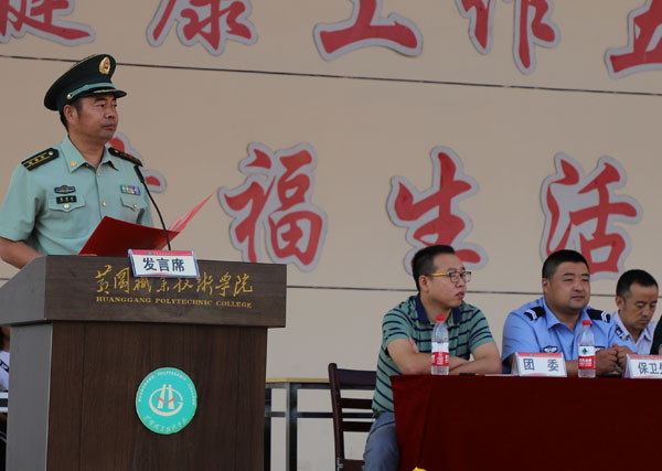 陈建林代表全体承训军官致辞,他向全体参训新生阐述了国防的重要性和军训的意义。希望同学们要珍惜军训机会,在令行禁止中培养纪律观念,在摸爬滚打中学会艰苦坚韧,在关心互助中感受团结友谊,用自己的努力收获精彩的人生印记,书写自己的“黄冈传奇”。