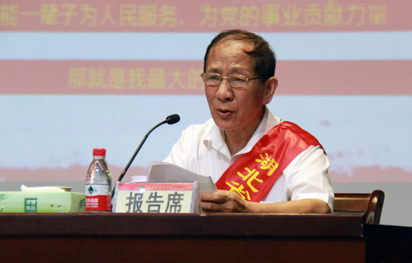 74岁的“当代雷锋”吴天祥,虽然喉咙沙哑了,但仍抑扬顿挫地讲述了自己入党54年来资助大学生上学与创业、帮助孤寡老人与儿童、关爱下岗工人等舍己为人的故事。为了救人,他四跳长江;为了资助大学生,他卖了自己的房子;为了孤寡老人生活幸福,他接老人住在自己家里,20年来亲自为她倒大小便……他用实际行动证明自己一辈子是一名忠于党、热爱人民的好党员。他的故事十分感人,一场报告赢得现场十几次掌声。