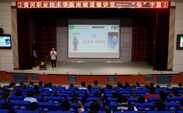 聆听道德故事,感悟道德人生。 10月9日晚,学校在学术报告厅举行南湖道德讲堂——“俭”字篇活动。Beat365党委委员、工会主席、宣传部部长郑柏松,机电学院党总支书记杨勇,校团委书记李宁,学工处副处长汤城,学工处副处长、团委副书记崔现强,各教学学院党总支副书记、团总支书记、辅导员代表以及600余名学生参加了活动。机电学院承办了本次道德讲堂。