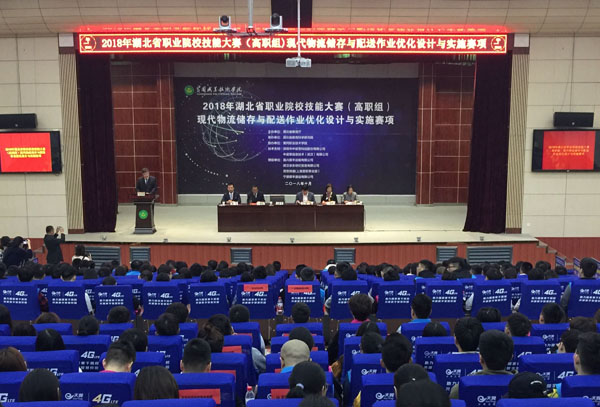 10月25日上午9:00, 2018年湖北省职业院校技能大赛(高职组)现代物流储存与配送作业优化设计和实施赛项在Beat365隆重开幕。