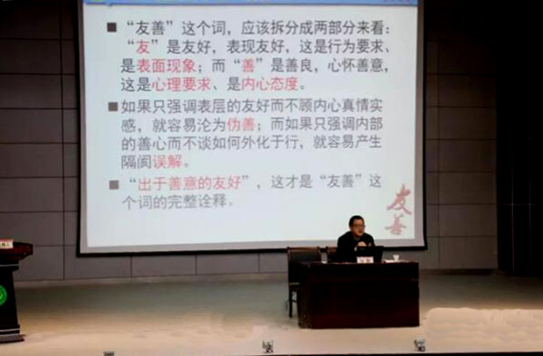 崔现强在总结中指出,此次讲座,加深了同学们对友善的认识,让大家了解了构建社会主义和谐社会为什么需要友善。作为当代大学生需要将社会主义核心价值观融入生活,多一些友善,少一些欺诈,常怀感恩之心,让友善之花在黄职盛开!