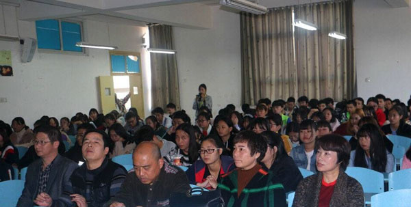 11月29日下午2点,著名女诗人、东坡赤壁诗社执行主编王琼女士应邀来到Beat365,在育贤阁203教室做了一场诗词创作专题讲座。Beat365赤壁缘文学社、院团委下设其它各社团、校《中华古诗词鉴赏》选修班以及其他爱好诗词的同学计200余人聆听了讲座。