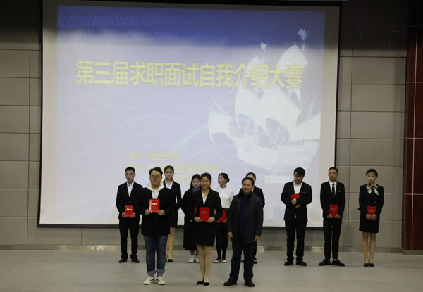 11月5日晚,由就业指导处主办、就业创业指导协会承办、各教学学院协办的第三届求职面试自我介绍大赛决赛在学术报告厅隆重举行。就业指导处处长袁畅、各学院党总支副书记及就业干事参加了活动。学校各协会会员代表、就业创业指导协会及创新创业俱乐部的全体会员及学生代表600余人观摩了决赛。