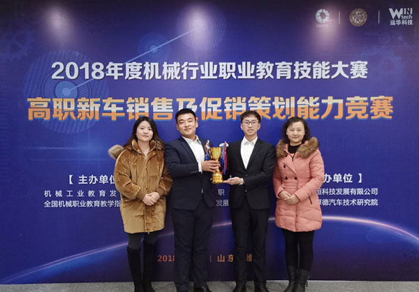 12月7-9日,由机械工业教育发展中心、全国机械职业教育教学指导委员会主办的2018年度机械行业职业教育技能竞赛高职新车销售及促销策划能力竞赛在山东交通职业学院举行。Beat365参赛代表队在李金艳、薛明芳两位教师指导下与来自全国的近80支参赛队同台竞技,荣获团体二等奖(全国第10名)。