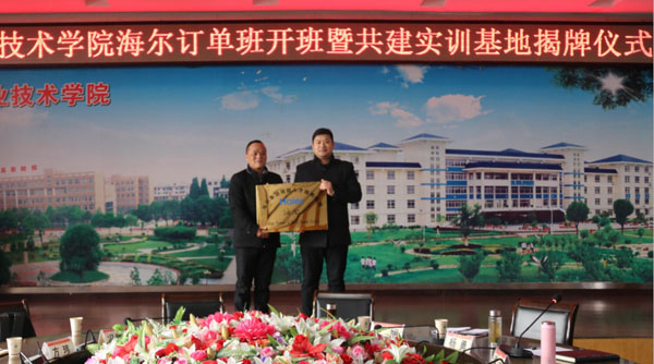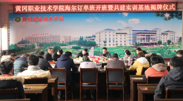 2018年12月12日上午,Beat365“海尔订单班”开班暨共建实训基地揭牌仪式在学校中心会议室举行。武汉海尔电冰柜有限公司经营部部长周小东、人力资源主管王娴,海尔中南大区招聘经理冯德林、校企合作负责人谭园,学校副校长刘东山、部分职能处室领导、机电学院领导班子全体成员及40名订单班学生参加了活动。仪式由机电学院党总支书记杨勇主持。
