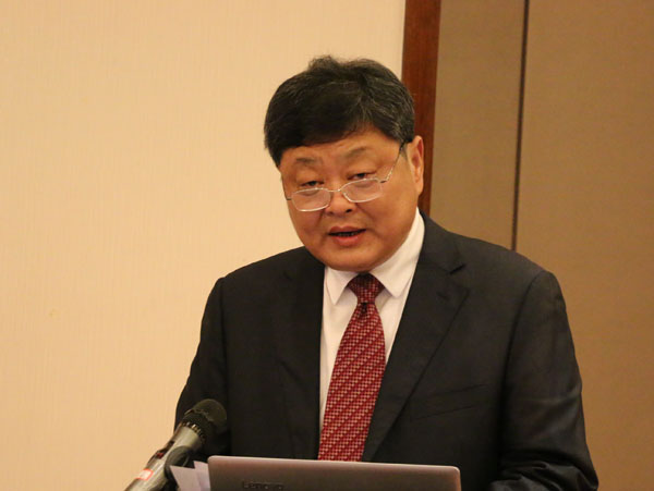 曾凡远主持会议第二板块,钢构行业专家报告和企业代表发言。华中科技大学土木工程与力学学院廖绍怀教授作“钢结构新技术及其工程应用”报告,杭州华新检测技术股份有限公司郑刚兵董事长作了“钢结构检测技术”发言。