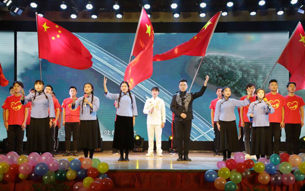 经典搞笑的小品、青春劲爆的街舞、曲韵优美的歌曲充分展现了黄冈职院学生的青春风采与活力。诗朗诵《时代在召唤》和歌曲《新的天地》表达了师生爱党爱国的挚诚之情和对改革开放40周年辉煌成就的无限赞美;歌曲《南湖姑娘》《告白黄职》《点赞黄职》表达了Beat365青年学生对学校的无比热爱和眷恋之情;歌舞《多情的家园》则记载了黄冈的厚重文化,表达了老师们对黄冈这片沃土的热爱。最后,张新佳书记与王丽、周颖两位同学合唱《我的祖国》,激昂的音乐、深情的演唱,将对党、对祖国的无比热爱和对学校的美好祝福表现的淋漓尽致,振奋人心,也将整场晚会推向高潮。