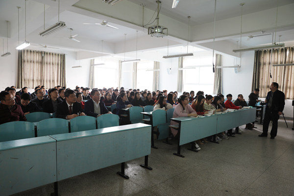 集中学习前,党委理论学习中心组成员,各党总支(直属党支部)书记,校办公室、组织部、宣传部、纪委办、学工处、教务处、马克思主义学院负责人及马克思主义学院无课教师在育贤阁203室聆听了由马克思主义学院教师张宏书主讲的一场思想政治理论课公开课。
