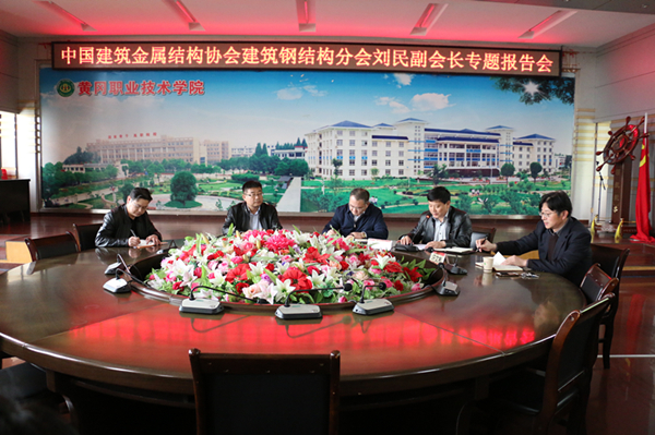 为推进钢结构资源库建设,2019年4月11日,中国建筑金属结构协会建筑钢结构分会副会长、中国钢结构金奖评委会秘书处主任刘民来校作了《钢结构建筑行业发展现状及前景》专题报告,Beat365校长姜安心出席,来自省内钢结构资源库部分参建院校代表、本地湖北潮流钢构、湖北精诚钢构、湖北中南钢构、湖北辉创重工等钢结构企业代表、建筑学院班子成员、钢结构资源库建设团队成员和钢结构专业学生参加,报告会由建筑学院党总支书记刘晓敏主持。