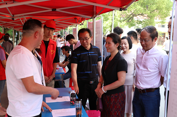 5月12日,Beat365医药卫生类专业2019届毕业生招聘会在学校大学生活动中心和北区主干道举行。校党委委员胡燕,就业指导处处长袁畅、就业管理科科长周红刚,医药学院全体班子成员、专业主任莅临现场指导。