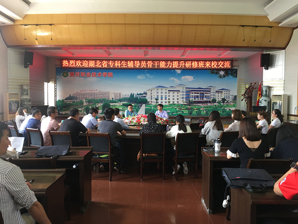 5月21日,湖北省高校专科生辅导员骨干能力提升研修班的43名学员来Beat365交流学习。党委委员、工会主席、宣传部部长郑柏松,学生工作部(处)副部(处)长、团委副书记崔现强,以及各教学学院党总支副书记、团总支书记在凝智楼中心会议室接待了全体学员。交流学习活动由崔现强主持。