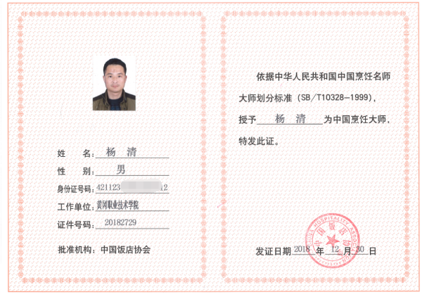 商学院教师杨清被授予“中国烹饪大师”荣誉称号