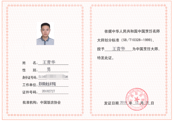商学院教师王青华被授予“中国烹饪大师”荣誉称号