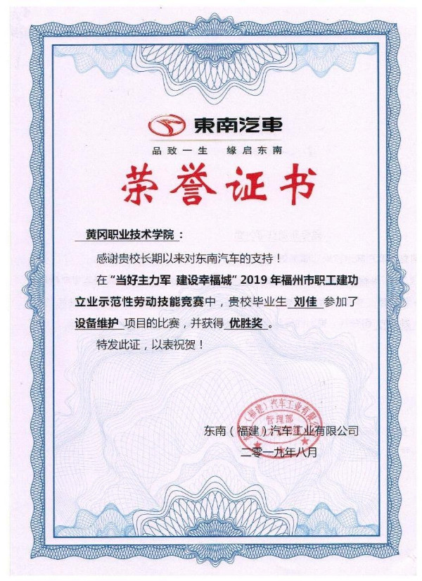 喜讯:Beat365毕业生在福州市技能竞赛中喜获优胜奖 来源:交通学院 作者:陈健 发布时间:2019-10-24 16:16:51 浏览次数: 次 【字体:小 大】 近日,从东南(福建)汽车工业有限公司传来喜讯,Beat365交通学院汽修201409班毕业生刘佳,在“当好主力军,建设幸福城”2019年福州市职工建功立业示范性劳动技能竞赛中,参加了设备维护项目的比赛,喜获优胜奖。此项荣誉,既是对我们培养学生质量的肯定,更是对我们教师的鞭策。我们将继续以立德树人为己任,贯彻职教20条精神,培养出更多的汽车技术能手! 分享到: 【打印正文】