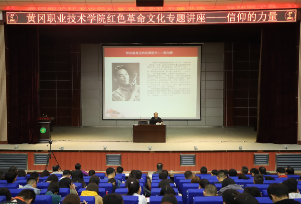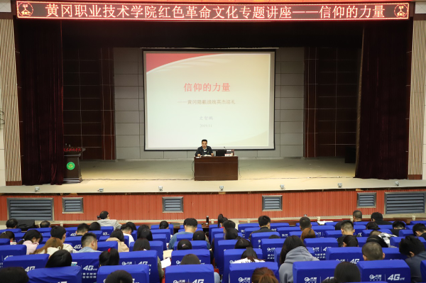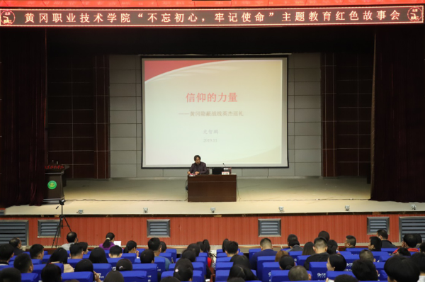 11月14日下午,由图书馆、学工处和组织部联合举办的《“不忘初心,牢记使命”主题教育红色故事会》在学校报告厅举行,著名的黄冈文史专家史志鹏老师,为我们带来《信仰的力量——黄冈隐蔽战线英杰巡礼》主题讲座。学校党委委员、副校长刘东山,图书馆直属党支部书记、馆长舒瑞琼,保卫处副处长魏鹏以及各教学学院团总支书记、辅导员代表、组织部代表、图书馆党员干部、大学生入党积极分子和学生干部600多人参加了活动。活动由图书馆馆员刘开国主持。