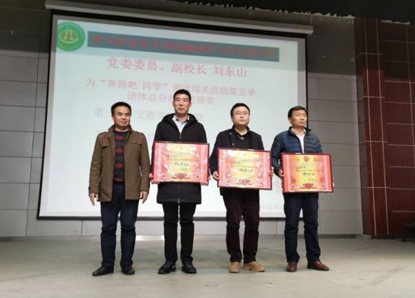 刘东山为“奔跑吧·同学”团体前三名颁奖