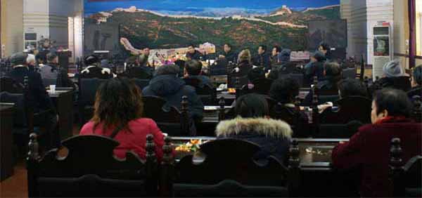 晚上,室外寒风凛冽,冰天雪地,室内春意融融,情意浓浓,院领导在西苑餐厅同离退休老干部欢聚一堂,吃团年饭,迎新春,辞旧岁。
