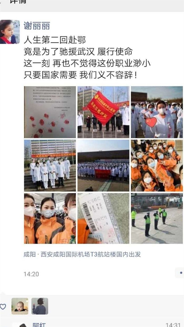 你问我怕不怕,我肯定害怕啊,但是国家有难,正是需要我们的时候,我能退居人后吗?如果我们医务人员都不能迎难而上,那谁来保护我们的国家?我那天正值休息,报完名之后坐床边愣了一会,看着科室主任发的那些信息,看着群里那一字一句的叮嘱:“带好个人防护用品,准备好纸尿裤”,当时心里真的五味杂陈……我妹当时问我:“你咋了,啥事情啊?”我跟她说我明天要去武汉支援了。她接着又问:“爸妈知道吗?你告诉他们了吗?”我说:“没有告诉呢,你别告诉爸妈,我害怕他们担心,但是我必须去,感觉是一种责任吧!”突然觉得那句话说得特别好:哪有什么白衣天使,不过是一群孩子换了一身衣服,学着前辈的样子,治病救人,与死神在抢人罢了。