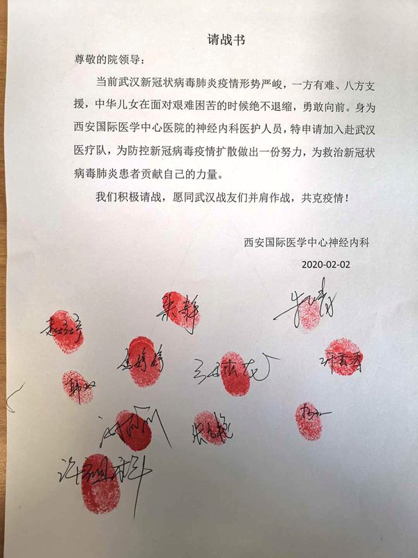 2月2号上午,西安国际医学中心医院的医护人员踊跃报名,不到五个小时就集合成了一支两百多人的团队。第二天上午,212名医务人员组成第二批独立医疗队出发接管武汉第八人民医院,写下请战书,转身就走!!!