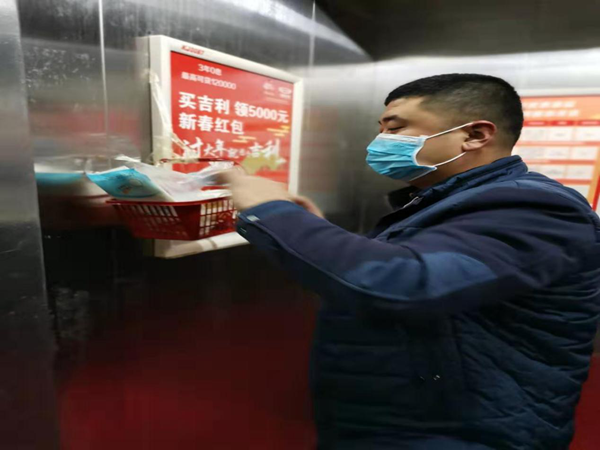 刘天夫在电梯内放置纸巾