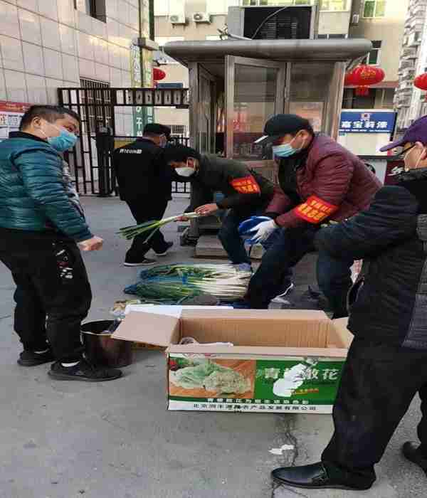 王尧(右二)在发放蔬菜