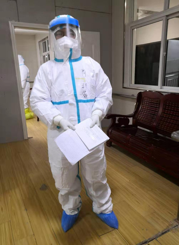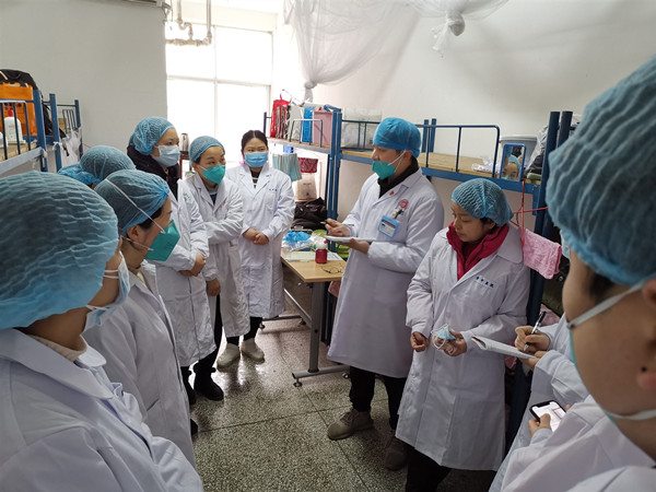 凌晨接到电话,说有近20人准备入驻,全体成员作好各项准备待命,我们一直在等待,却都没来,又是有点失望。一早起床推开门,遇到陈少敏副市长来视察,她询问了一些具体情况,让我们随时待命。这更是让人感觉情况很严峻,我们的责任和使命更重。同时,这也更需要我们的担当。中午、下午开会再次动员,明确隔离点升级,由原来的阳性接触隔离病区升级为疑似隔离病区,预进驻150名疑似病人,准备同时开辟D栋、C栋隔离区,我们又是各种准备、忙碌。护士刘潇潇和郑方补充进入病区。晚上9点,我和中医院王医生,4名护士和区医院叶书记穿好防护装备首次进入隔离病区,接诊第一名病人,自己没有丝毫畏惧,接诊有条不紊,不过第一次穿着防护装备,到处裹得严严实实的,时间长了,闷得有点喘不过气来。现场摸索完善各种操作流程,直至凌晨3点。