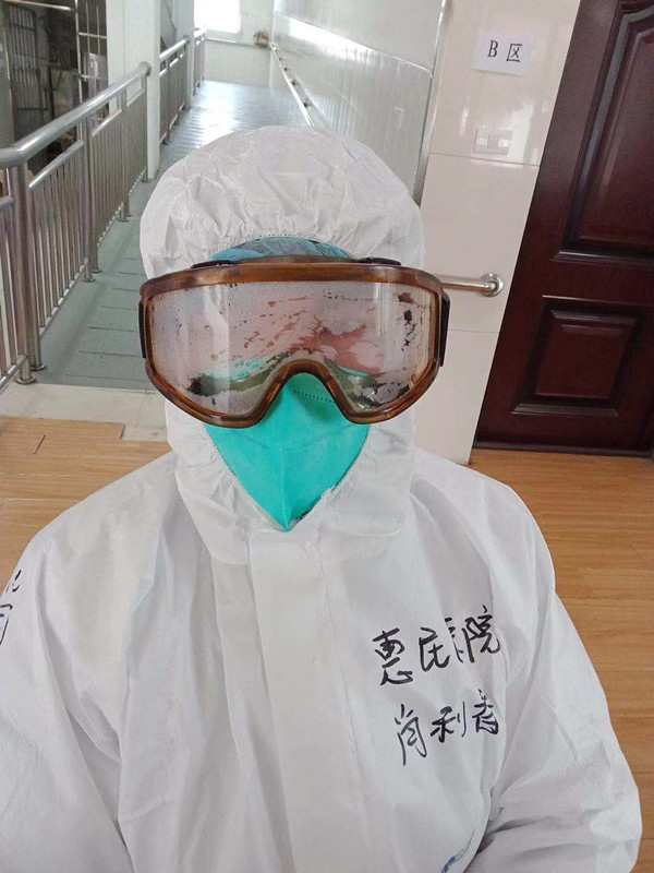 本轮抗击新冠肺炎一线工作,无论是身体上还是心理上都经受了巨大的考验,时间长了怕上厕所,上班前就控制饮食,甚至穿纸尿裤上班。累了稍作休息接着上,有意见有想法时收拾心情默默地上,看不见时摘了眼镜上,怕亲友担心报了平安后义无反顾地上。在困难危险面前,我们勇往直前,敢于担当,永不退缩。大家一起战胜各种困难,最终收获了相关领导的高度评价:“惠民医院的医护人员真是不错!顾全大局,有责任心!”“这小伙子不错,工作能力强,敢于担当!”……