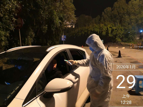 口腔201930班的陈金领是河南人,长期生活在云南昆明寻甸县倘甸镇,工作于寻甸倘甸健美口腔诊所。疫情当前,他利用诊所的便利自己出资,多次捐赠口罩共计1000余个、84消毒液25公斤、乳胶手套50双。他于2月7日主动去镇政府报名加入防疫志愿者的队伍,2月8日便进入倘甸鲁嘎堵卡点值勤。由于地方消毒防护物资缺乏,他自己筹备红外体温表、水银体温计、手术衣、口罩、手术帽、面罩等防护物品,加入到排查过往车辆、测体温、登记、宣传的队伍中,对外来车辆人员耐心劝返,9至10日是风雨天气,但他仍坚守阵地。陈金领说: “为防疫工作做些力所能及的事是我们身为医务工作者应负的社会责任,同时也是我们的荣幸。主动去防疫一线,我们从未后悔,愿疫情早日退去!黄冈加油!武汉加油!中国加油!”