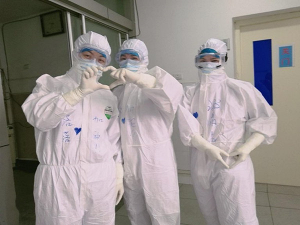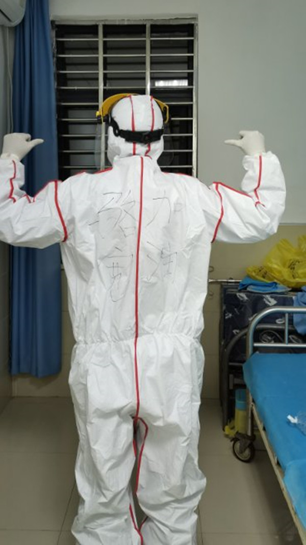 兄妹经过历练,现在已经适应了这种紧张的工作节奏。同事们每次进隔离区都会相互在防护服上写几句加油鼓劲的话,很温暖。工作也变得有条不紊,病人也由开始的恐慌变得平静,对他们都特别信赖,积极配合。