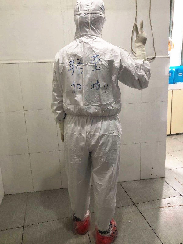 妹妹骆莹,一名普通的护理人员,她说进隔离区之前真的很坦然,因为自己选择了护士这个岗位,就没有在困难面前退缩一说,跟伟大、高尚无关,逆行也只是大家的说法。但第一次踏进临时开辟出的隔离区,她要打包医疗物资,整理分发生活用品;仓促住进的慌乱病人要量体温、挂药水、做雾化、安抚情绪;惶惶不安的病人家属不断打进质疑电话她要不断重复解释;她要分发盒饭,要打扫卫生,要背起沉重的药桶进行地面消毒……几十个病人的吃喝拉撒及护理,必须全部由两个护士完成,8个多小时下来差点崩溃。她们穿着密不透风的防护服穿梭在各个病房,无法补充水和任何食物,没有片刻的休息,身体都快虚脱了。所有你能想到的想不到的,该干的不该干的,那一晚都是她们在干。下班后妈妈打来电话,她却什么也不敢说。她说她知道爸妈整夜在担心,没怎么睡觉,因为每次抽空发个信息他们都能秒回。
